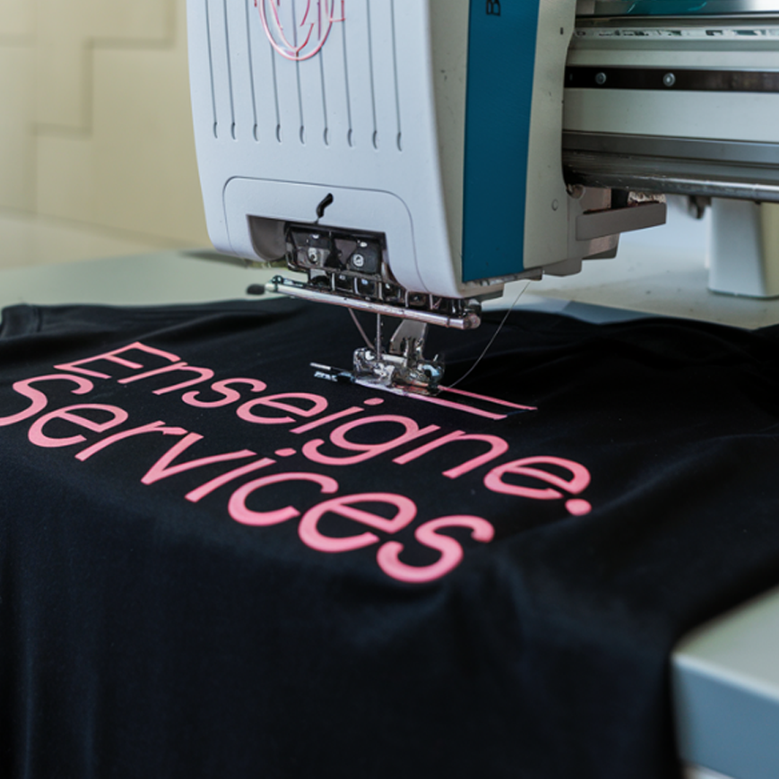 nvie de vêtements brodés à votre marque ? La broderie logo sur textile fait toute la différence ! Polo, veste polaire, casquette, serviette, sac..Enseigne.services réalise de la broderie sur mesure, sur tous types de supports !